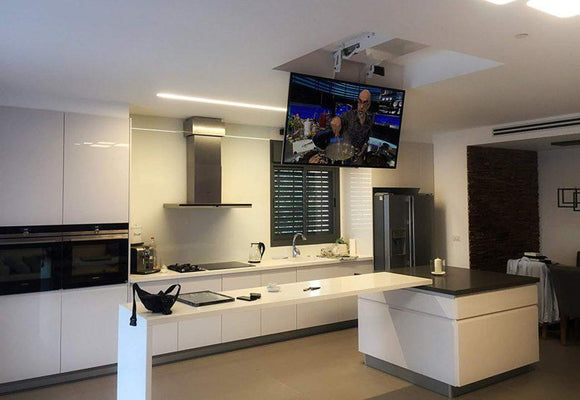 If you need to drop a TV down from a ceiling or cabinet, then you need a Drop Down TV lift mechanism. Our Drop down TV Lifts are universal so they fit any size TV, and because our stroke options are so large, you are able to remotely control the mechanism to move the TV further down into a better viewing height to make a very comfortable viewing angle.
